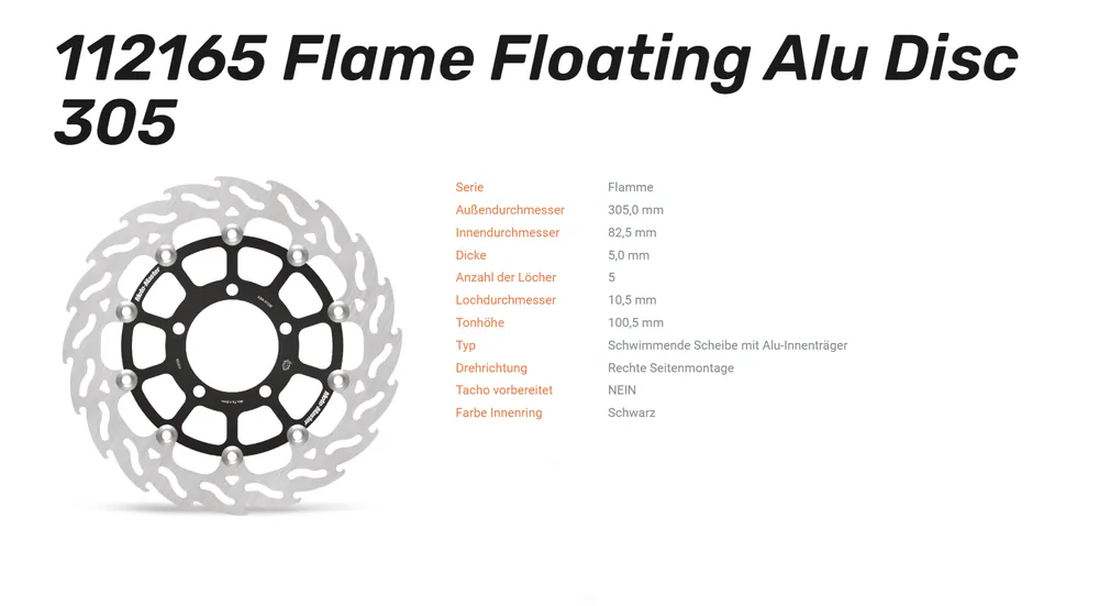 Moto-Master Bremsscheibe Flame Floating Alu Disc 305 (112165) vorne rechts passend für Triumph Tiger/Speed Twin; Bj. ab 2018