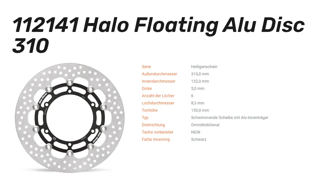 Moto Master Bremsscheiben mit perforierter Bremsfläche für ein perfektes Bremsen sindaus Erkenntnissen des Rennsports entwickelt. Moto.Master stehtfür eine perfekte Passform und eine außergewöhnlich sportliche Optik.Alle Bremsscheiben sind aus gehärtetem und veredeltem Chromolybdän-Stahlgefertigt undpräzisions-lasergeschnitten, CNC-gefräst und oberflächenbehandelt. Auch bei hoherHitzeentwicklung sind Formstabilität, Schwingungsarmut und gleichbleibende Bremsleistung garantiert. Das Designsorgt für eine Selbstreinigung der Bremsscheibe und eine optimale Temperaturverteilung und Hitzeableitung.