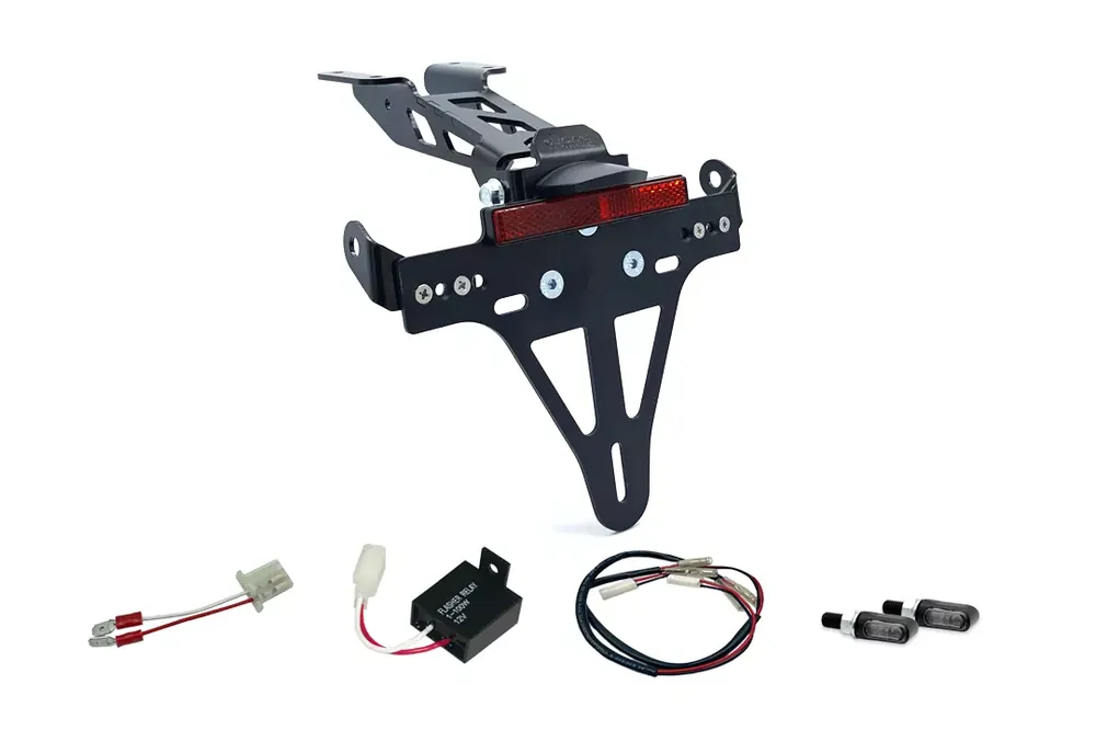 Das alpha Technik Kennzeichenhalter-Blinker-Kit M-LED ist speziell passend für Yamaha MT125 ab Modelljahr 2020 entwickelt worden. Dieses hochwertige Komplettset bietet alles, was Sie für den sauberen Umbau von Kennzeichenhalter und Blinkern an Ihrem Motorrad benötigen. Jeder Bausatz wird direkt am Fahrzeug getestet, um eine perfekte Passform und einfache Montage zu gewährleisten. Der kurze Kennzeichenhalter überzeugt durch sportliches Design, geringes Gewicht, hohe Stabilität und präzise Verarbeitung. Dank der stufenlosen Neigungsverstellung und des doppelten Korrosionsschutzes (Edelstahl, Aluminium, schwarz eloxiert bzw. kathodisch getauchlackiert) profitieren Sie von Langlebigkeit und stilvollem Look.