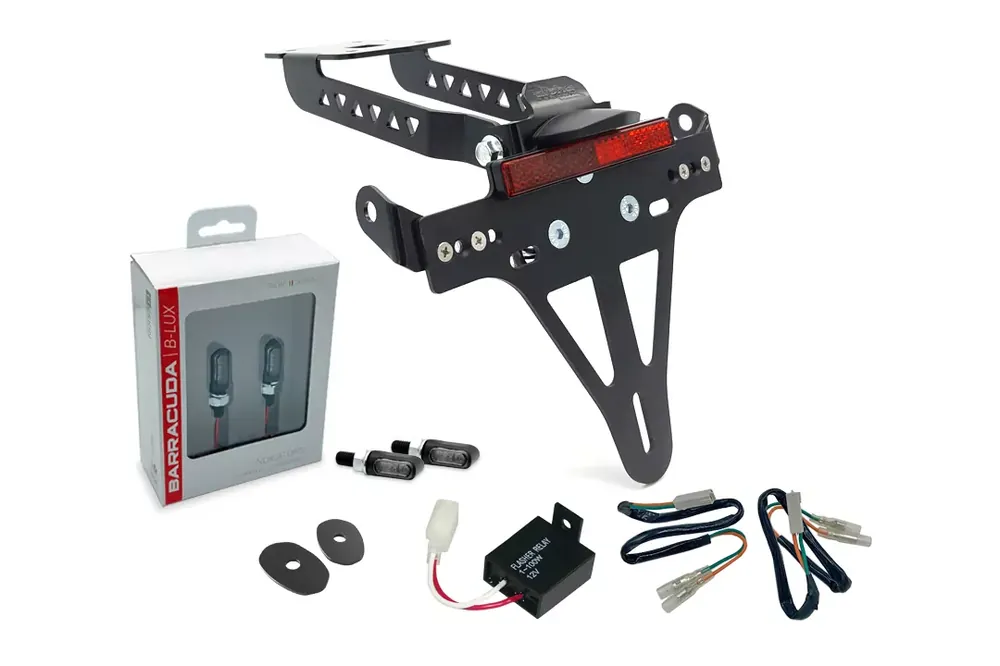 Der Kennzeichenhalter überzeugt durch sportliches Design und präzise Verarbeitung aus Edelstahl und Aluminium. Dank Laserschnitt ist er rostfrei und widerstandsfähig. Eine schwarze Eloxal- oder kathodische Tauchlackierung sorgt für einen eleganten Look. Die Neigung ist stufenlos verstellbar, und alle Halter für Zubehörblinker mit Gewinde M8 sind enthalten. Durch den anpassbaren Blinkerabstand bleibt Ihr Fahrzeug richtlinienkonform.