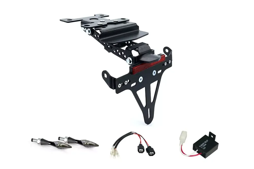 - Komplett-Kit mit Kennzeichenhalter, Blinkern, Relais und Adapterkabeln