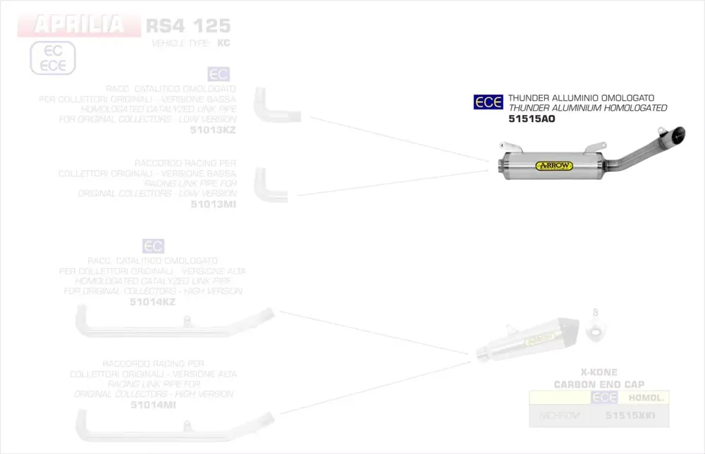 Der Originalkatalysator entfällt. Der Schalldämpfer ist nur in Verbindung mit 51013KZ (mit Kat) oder 51013MI (ohne Kat) verwendbar. Die Euro 4 Zulassung gilt ausschließlich in Verbindung mit dem Katalysator.