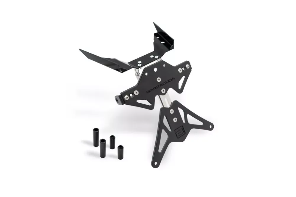 Der Barracuda Kennzeichenhalter aus schwarz eloxiertem Aluminium ist speziell passend für BMW R1250GS Modelle ab Baujahr 2019 entwickelt. Das robuste Design kombiniert ein verstellbares Edelstahlscharnier mit einer vibrationsarmen Konstruktion und sorgt so für eine sichere und langlebige Befestigung. Die Halterung wird inklusive aller benötigten Montageschrauben geliefert und bietet eine einfache Installation sowie eine perfekte Anpassung an die Kennzeichengröße. Ideal in Kombination mit Barracuda Blinkern – die Verwendung der Originalblinker ist jedoch nicht möglich. Die Kennzeichenbeleuchtung (Art.-Nr. BC-N1002) und der Rückstrahler (Art.-Nr. BC-NCAT) sind nicht im Lieferumfang enthalten und müssen separat bestellt werden.