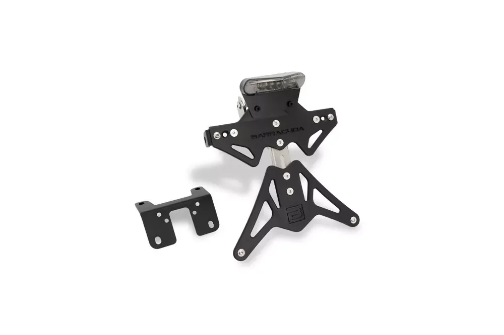 Der Barracuda Kennzeichenhalter passend für Husqvarna Norden 901 ab Modelljahr 2022 überzeugt durch hochwertige Verarbeitung und sportliches Design. Gefertigt aus schwarz eloxiertem Aluminium bietet er eine langlebige, korrosionsbeständige Oberfläche, die optimal zur Gesamtoptik des Motorrads passt. Dank präziser Fertigung und stabilen Edelstahl-Scharnieren ist eine vibrationsarme und sichere Montage gewährleistet.