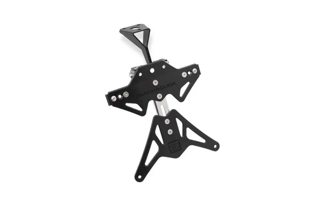 Der Barracuda Kennzeichenhalter passend für Yamaha YZF-R1 2009-2011 überzeugt durch seine hochwertige Verarbeitung und sportliche Optik. Gefertigt aus schwarz eloxiertem Aluminium, bietet er eine langlebige und stabile Lösung für eine individuelle Heckgestaltung Ihrer Maschine. Das verstellbare Scharnier aus Edelstahl sorgt für eine präzise Positionierung des Kennzeichens und reduziert Vibrationen auf ein Minimum.