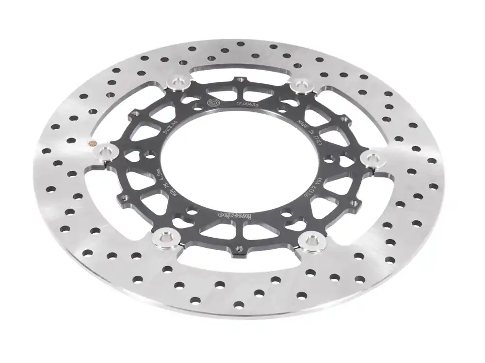 Schwimmend gelagerte Bremsscheiben bestehen aus einem Bremsband aus Edelstahl, das über 10 Mitnehmerbolzen mit dem Innenteil aus CNC-bearbeiteter und anschließend eloxierter Aluminiumlegierung verbunden ist. Die schwimmend gelagerten Bremsscheiben von Brembo bieten dank der Fertigung mit Materialien höchster Qualität absolute Spitzenleistungen.