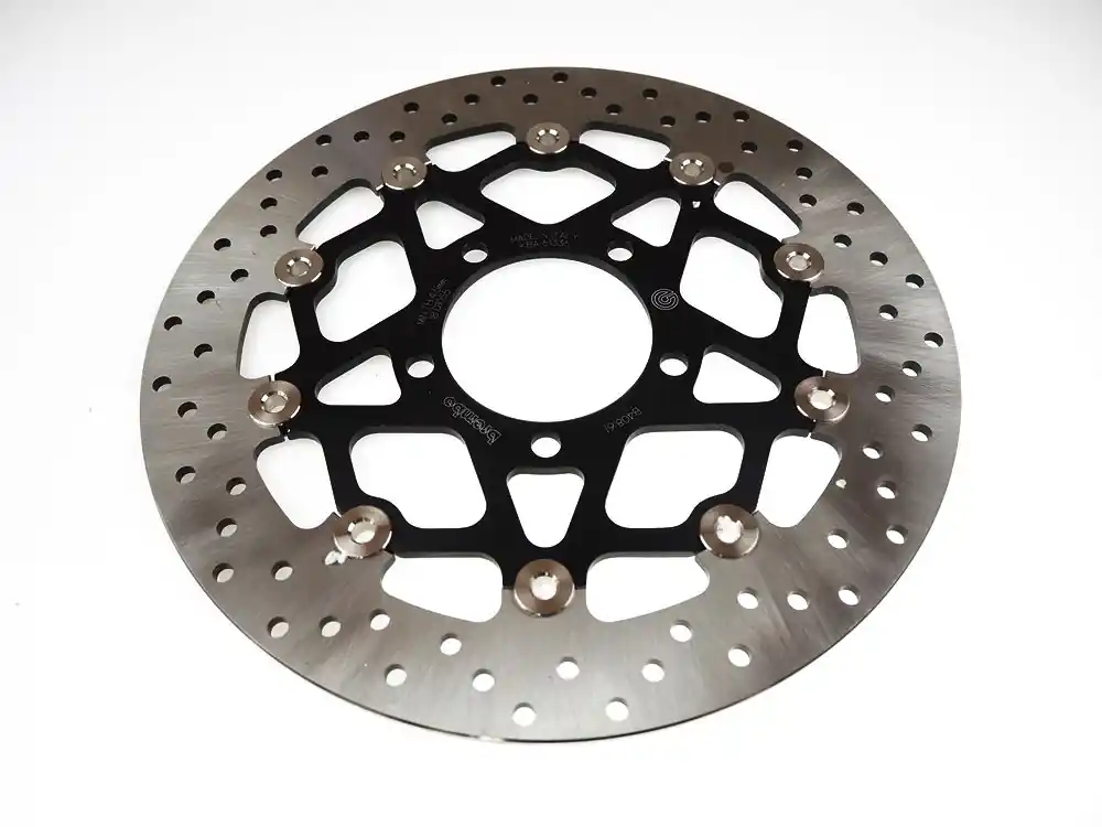 Schwimmend gelagerte Bremsscheiben bestehen aus einem Bremsband aus Edelstahl, das über 10 Mitnehmerbolzen mit dem Innenteil aus CNC-bearbeiteter und anschließend eloxierter Aluminiumlegierung verbunden ist. Die schwimmend gelagerten Bremsscheiben von Brembo bieten dank der Fertigung mit Materialien höchster Qualität absolute Spitzenleistungen.