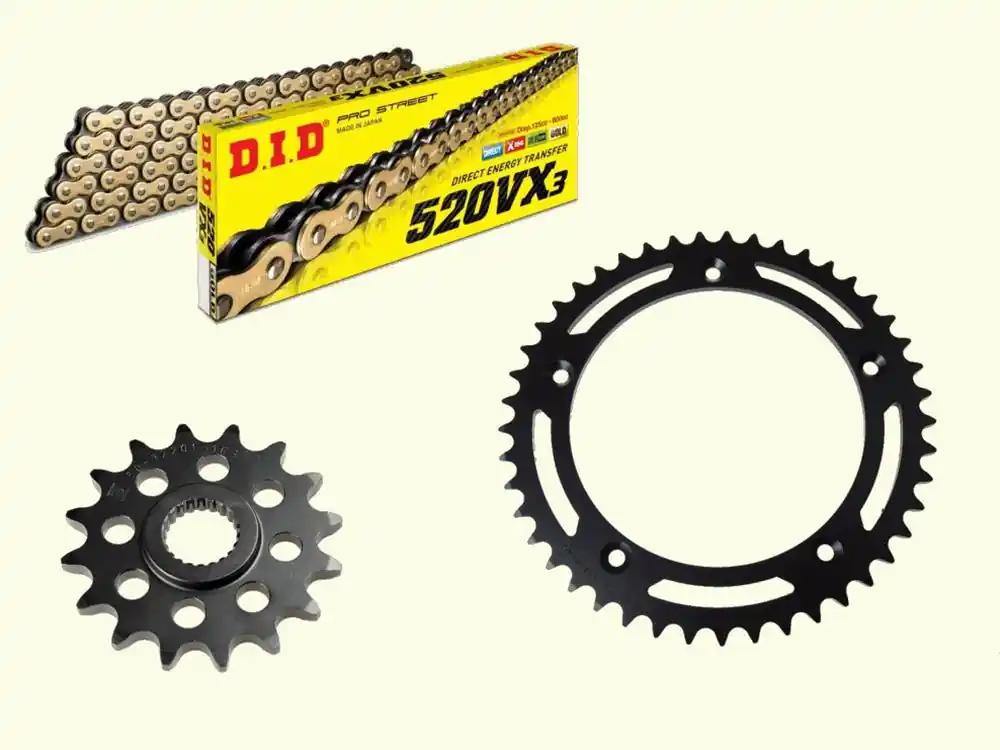 Die Kette ist eine extra verstärkte DID-Kette. DID ist Erstausrüster vieler marktführender Motorradmarken und Motorsportteams.