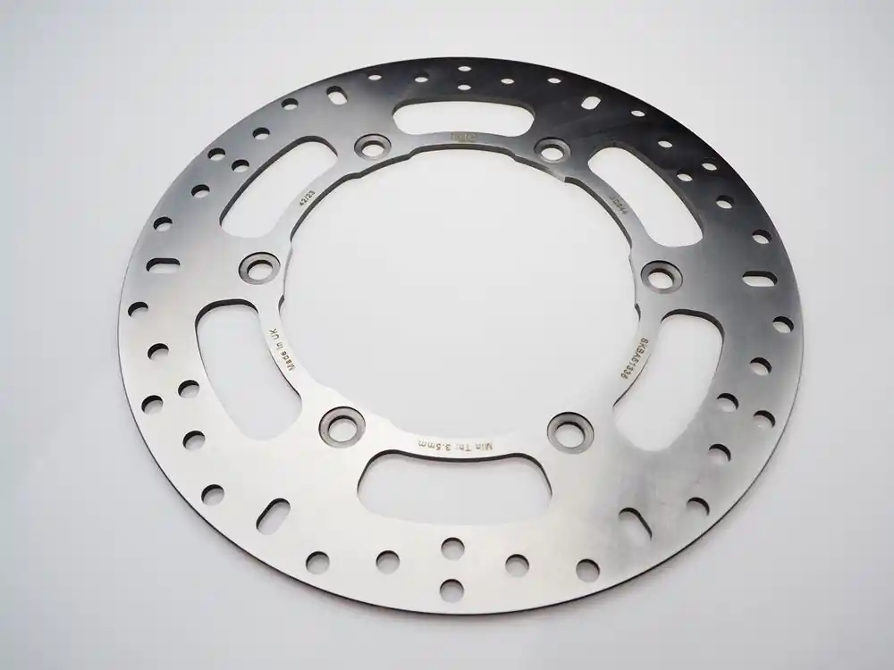 Die Bremsscheiben sind im Vogelschwingendesign gebohrt, um mit so wenig Bohrungen wie möglich bei gleichzeitig optimierter Reinigung der Bremsscheibe von Regenwasser und Bremsstaub auszukommen. Je weniger Bohrungen angebracht sind, desto besser ist das Nassbremsverhalten und desto geringer ist der Verschleiß.