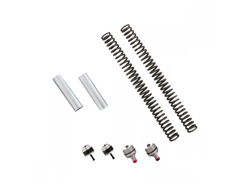Das YSS Gabel Upgrade Kit enthält eine straffere Gabelfeder sowie ein Gabelventil und einen einstellbaren Gabelholmverschluss. Das Gabelventil verändert den Ölfluss in der Gabel in beide Richtungen und die Gabelfeder bewirkt ein strafferes Federverhalten.