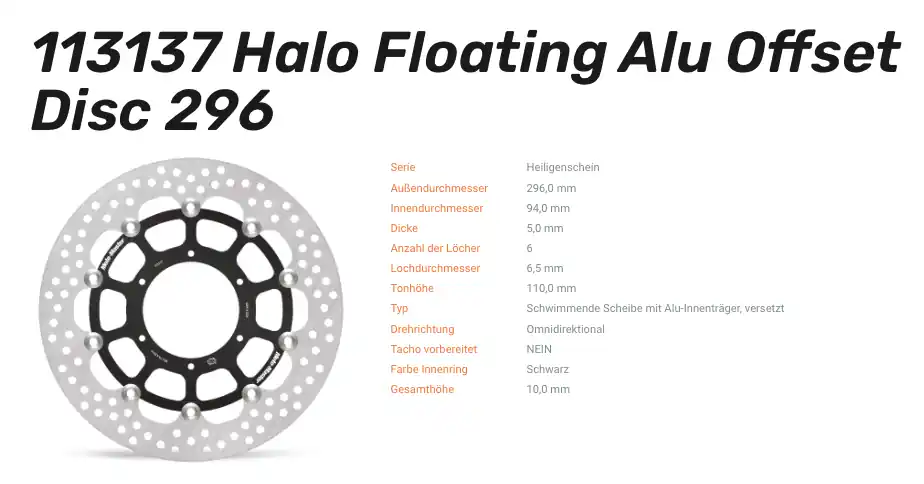 Moto-Master Bremsscheibe Floating-Alu Offset Halo-Serie passend für Honda – 113137