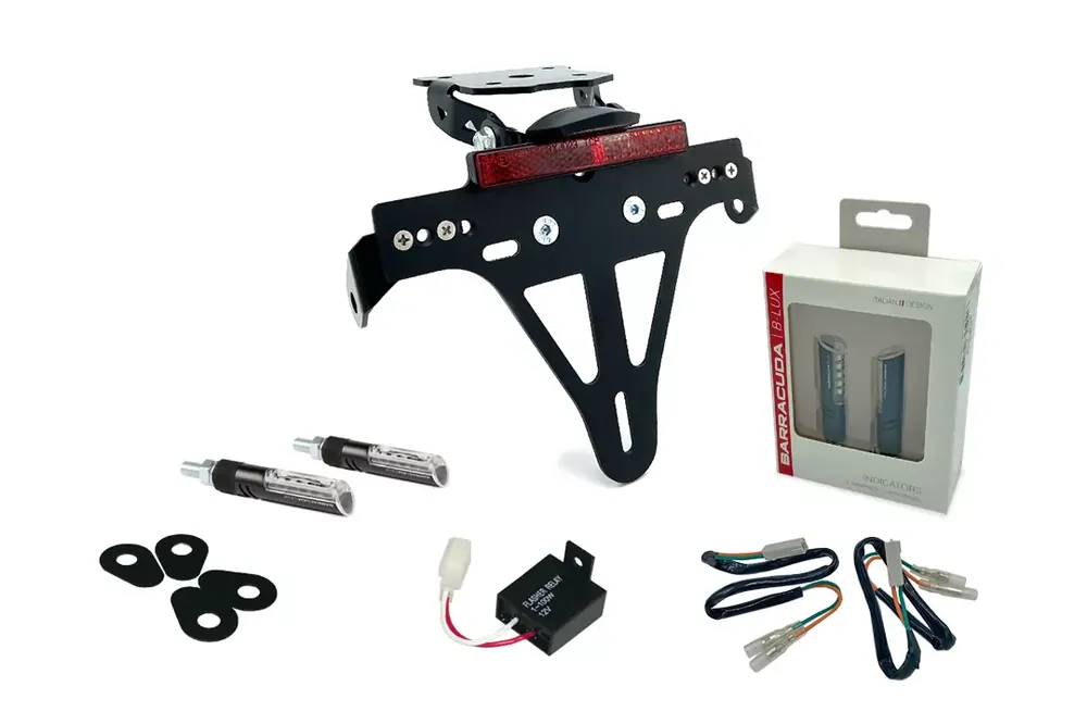 Das Kennzeichenhalter-Blinker-Kit IDEA passend für Kawasaki Z800 ab Modelljahr 2013 bietet Ihnen eine komplette Lösung für den Umbau von Kennzeichenhalter und Blinkern an Ihrem Motorrad. Alle erforderlichen Komponenten sind enthalten und aufeinander abgestimmt, sodass Sie sich über einzelne Teile oder Kompatibilitätsfragen keine Sorgen machen müssen.