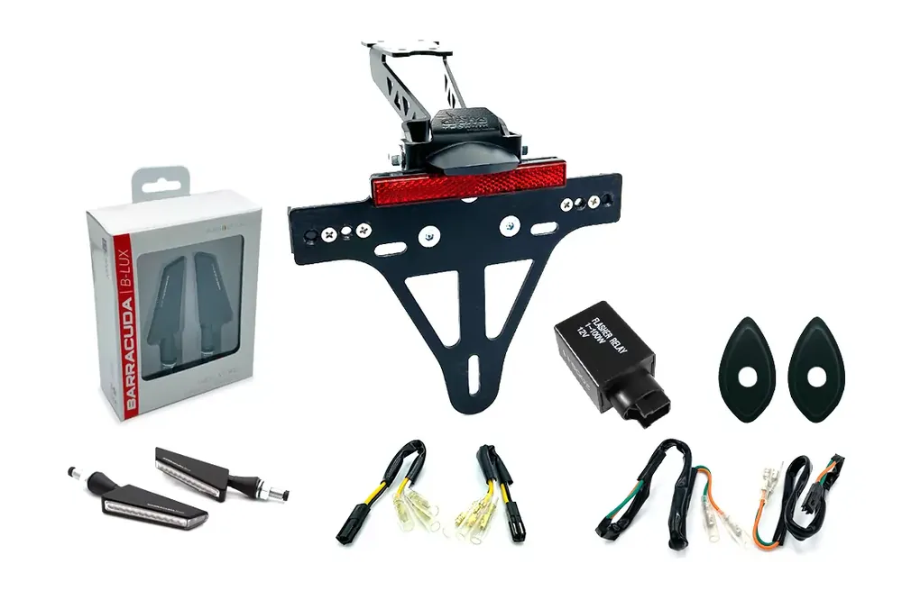 Das Kennzeichenhalter-Blinker-Kit SQ-LED von alpha Technik ist die ideale Lösung für den einfachen und vollständigen Umbau Ihres Motorrads. Es ist passend für Honda CB500F Typ PC58 und CBR500R Typ PC57 ab Modelljahr 2017. Das Komplettset enthält einen hochwertigen, kurzen Kennzeichenhalter sowie LED-Lauflichtblinker für vorne und hinten inklusive aller Adapterkabel, Adapterplatten und einem Blinkerrelais. Jedes Kit wurde am Fahrzeug montiert und getestet, um eine optimale Passform und Funktionalität sicherzustellen.
