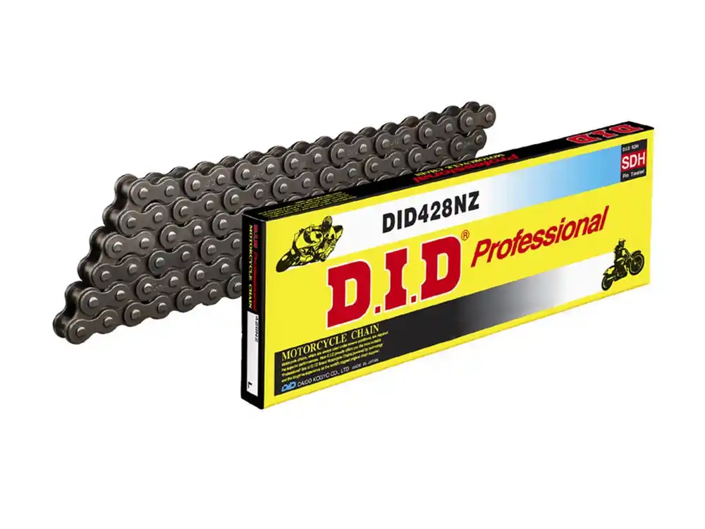 Markenware Kette DID Motorrad: DID428NZ 134 Glieder silbergrau offen mit Clipschloss