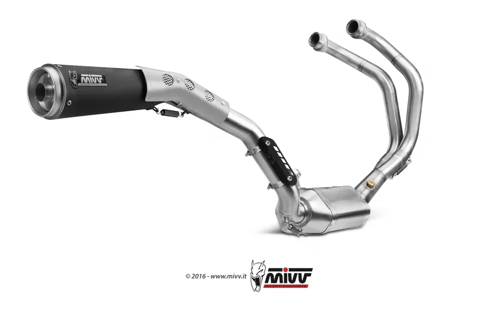 Die MIVV Ghibli Black Komplettanlage aus hochwertigem, schwarz lackiertem Edelstahl bietet eine perfekte Kombination aus Leistung, Gewichtseinsparung und sportlichem Sound. Diese Komplettanlage inkl. Krümmer ist speziell passend für Yamaha XSR 700 (2016–2020) entwickelt und sorgt für ein verbessertes Ansprechverhalten sowie eine akustisch ansprechende Performance. Durch den Wegfall des Originalkatalysators und die Option zum Einbau des Nachrüstkats ACC.041.A1 bleibt die Anlage ECE-zugelassen (Euro 3/Euro 4). Ideal für Fahrer, die Wert auf Qualität, Optik und Klangcharakter legen.
