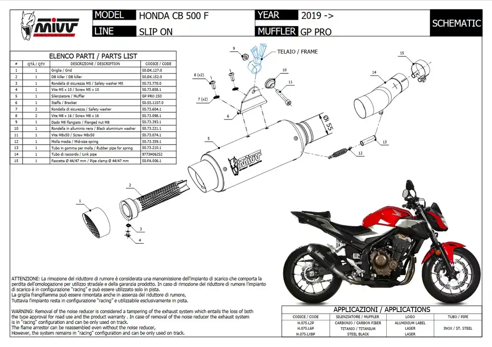 MIVV GPpro Endschalldämpfer Edelstahl Schwarz passend für Honda CB 500 F 19-22 Neu