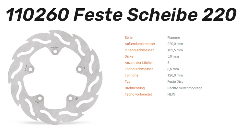 – Moto-Master Bremsscheiben sind für jeden Einsatzzweck, sei es Offroad, Supermoto und Strasse geeignet