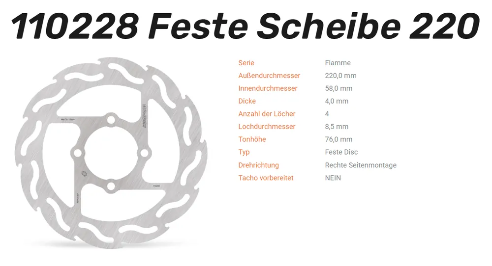 – Moto-Master Bremsscheiben sind für jeden Einsatzzweck, sei es Offroad, Supermoto und Strasse geeignet