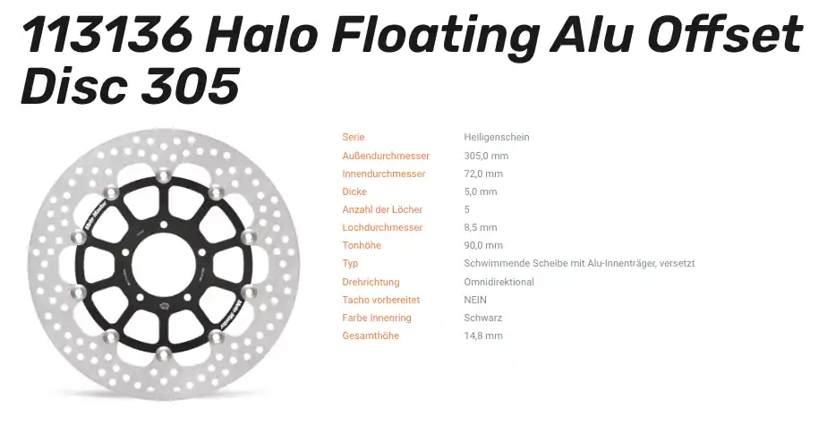 Moto-Master Bremsscheibe Floating-Alu Offset Halo-Serie passend für Ducati – 113136