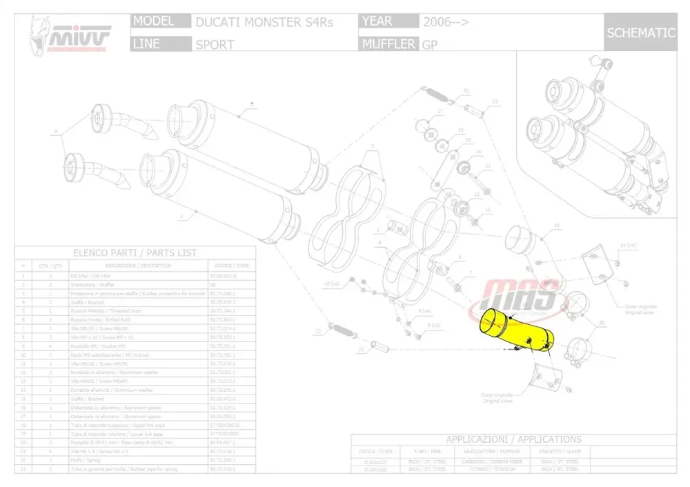 Neu Im Sortiment MIVV Verbindungsrohr passend für Ducati Monster 1000 S4Rs ´06