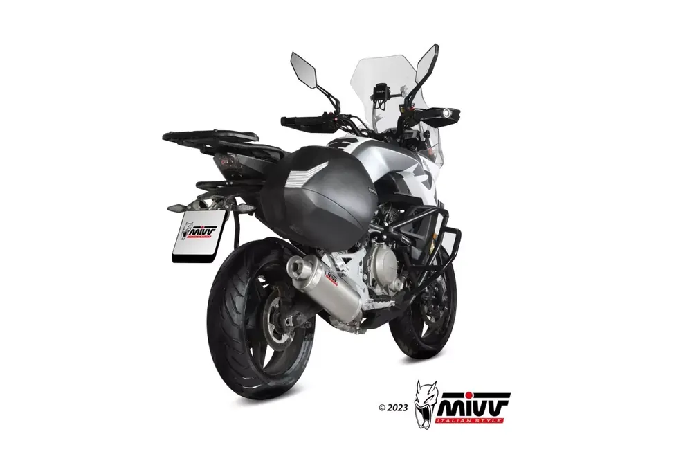 Der MIVV Oval Endschalldämpfer aus hochwertigem Edelstahl überzeugt durch erstklassige Verarbeitung, sportliches Design und ausgezeichnete Leistungswerte. Diese Anlage wurde speziell für die CF MOTO 650 MT (Baujahr 2021–2023) entwickelt und sorgt für einen kernigen Sound sowie eine verbesserte Performance. Durch die optimierte Abgasführung wird das Ansprechverhalten des Motors verbessert und das Gesamtgewicht reduziert.
