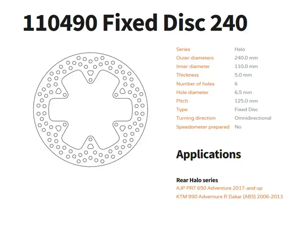 Neue Kollektion Moto-Master Bremsscheibe passend für KTM 990 Adventure ABS (Bj.06-13) hinten Serie Halo 110490