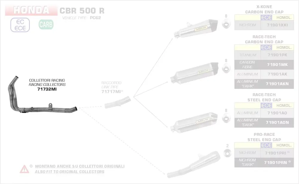 Neue Ware Arrow Racing Krümmer Ø 43 mm passend für Honda CBR 500R 19/20