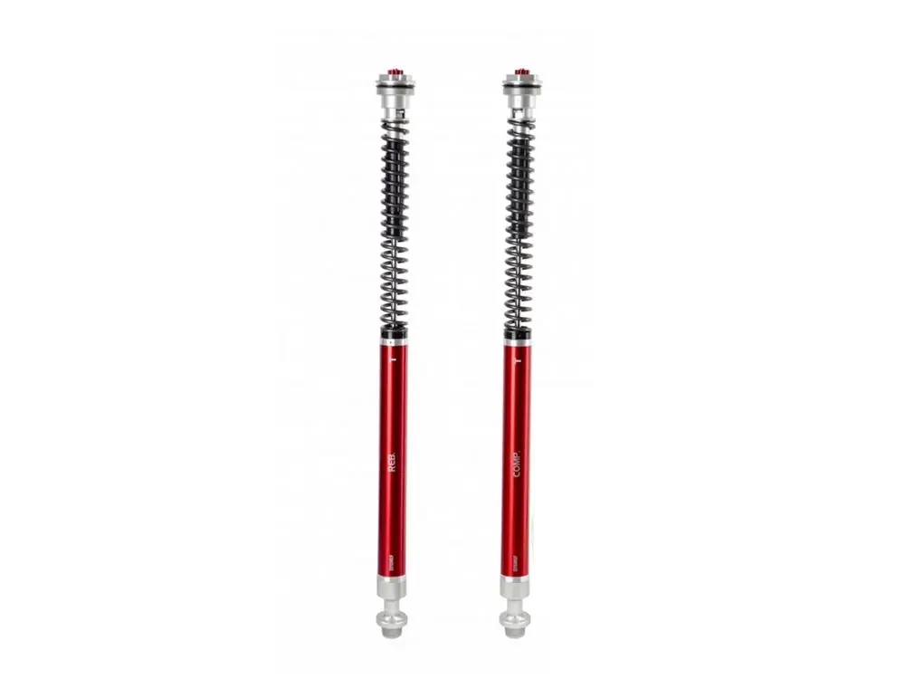 Einstellbare Federvorspannung, Zug- und Druckstufedurch eigens entwickelten Holmdeckel. Enthaltene straffere Feder kann bei Bedarf ausgetauscht werden.