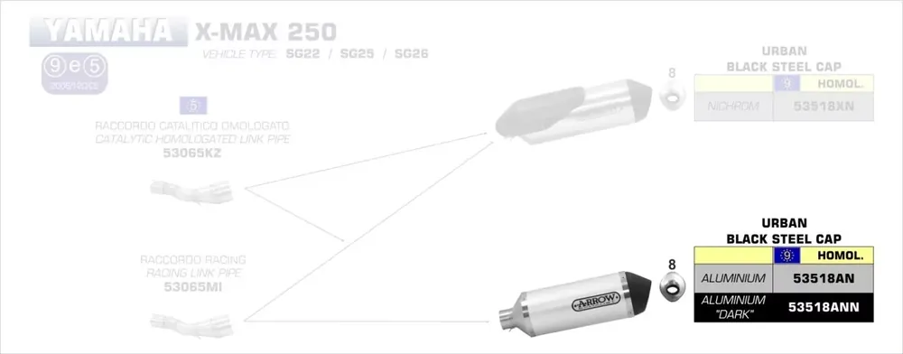 Neuheit Arrow Urban Endschalldämpfer Aluminium Schwarz passend für Yamaha X-Max 250 09–16