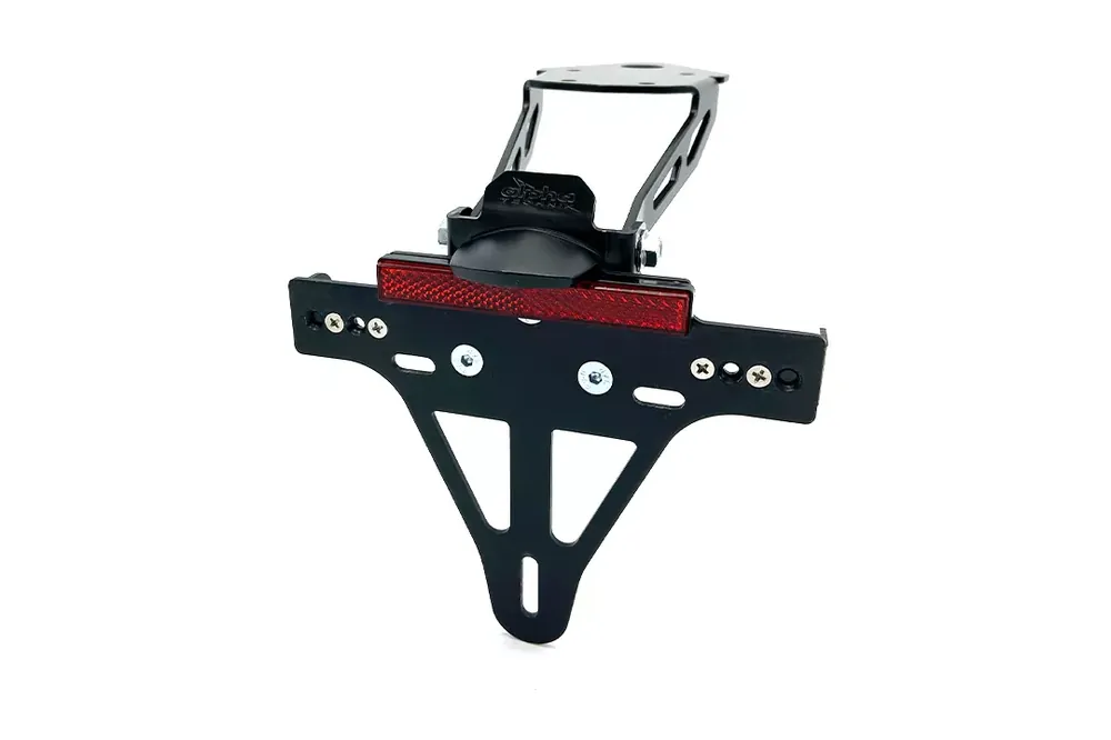Der hochwertige Kennzeichenhalter von alpha Technik ist speziell passend für Kawasaki Ninja ZX-10R ab Modelljahr 2022 entwickelt. Das sportliche Design und die präzise Verarbeitung aus rostfreiem Edelstahl und Aluminium bieten eine langlebige und elegante Lösung zur Montage Ihres Kennzeichens. Durch die schwarze kathodische Tauchlackierung bzw. Eloxalschicht erhält der Halter eine widerstandsfähige und edle Oberfläche. Die Neigung lässt sich stufenlos einstellen, sodass Sie das Kennzeichen individuell anpassen können. Auch die Blinkerposition kann in der Breite variiert werden – für eine richtlinienkonforme Ausführung. Dank der mitgelieferten Montageelemente und der detaillierten Einbauanleitung gelingt die Installation mühelos. Der Kennzeichenhalter wird inklusive E-geprüfter Kennzeichenbeleuchtung und Rückstrahler geliefert. Bitte beachten Sie: Für die Montage der originalen Blinker sind separate Adapter erforderlich, die unter dem Punkt „Zusatzartikel“ erhältlich sind.