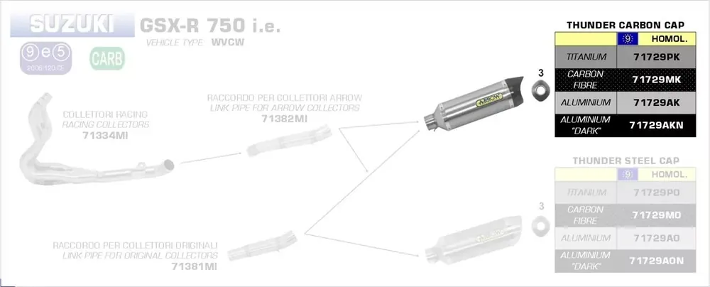 Nur Heute Arrow Thunder Titan Endschalldämpfer mit Carbon-Endkappe passend für Suzuki GSX-R 600/750 (2008–2010)