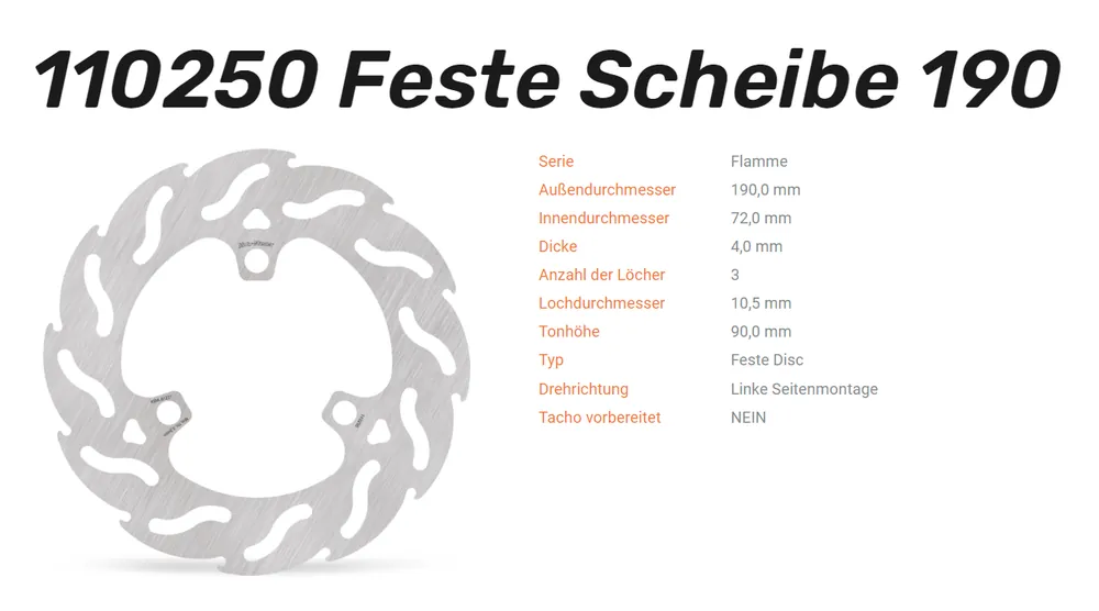 – Moto-Master Bremsscheiben sind für jeden Einsatzzweck, sei es Offroad, Supermoto und Strasse geeignet