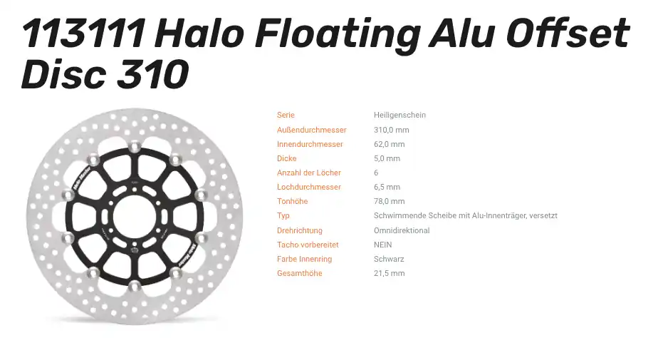 Online Kaufen Moto-Master Bremsscheibe Floating-Alu Offset Halo-Serie passend für Honda – 113111