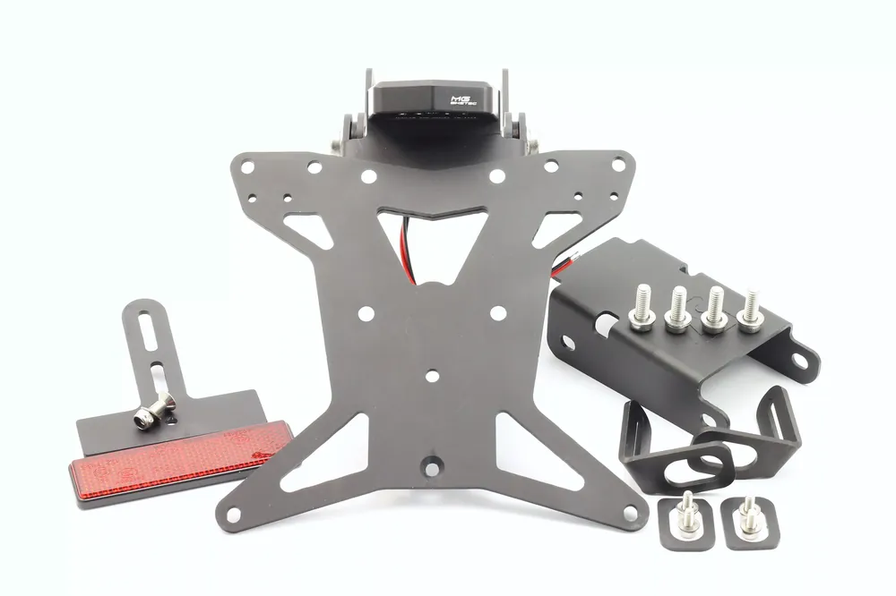 Der Kennzeichenhalter ist mit den Originalblinkern kompatibel und in mehreren Halterplattengrößen erhältlich, um den Anforderungen verschiedener Länder gerecht zu werden: