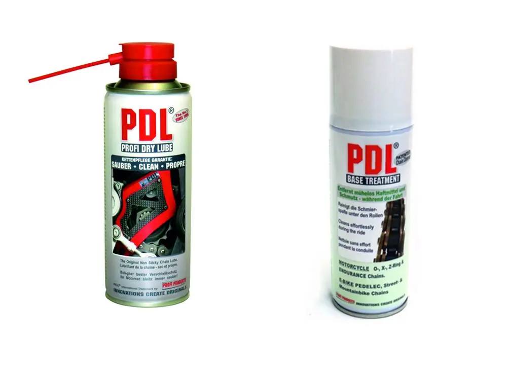 Oberflächliche Verschmutzungen und klebrige Kettensprays werden nach dem Besprühen einfach von der Kette abgewischt. Während dem Fahren und nach einem erneuten Besprühen reinigen sich die Schmierspalten (unter den äußeren Kettenrollen) von selbst. PDL® Base Treatment (DBGM geschützt und in Deutschland hergestellt) wirkt beim Fahren – als Schmierstoff und in reinigender Funktion. Die Kettenrollen sind nach kurzer Zeit wieder leichtgängig, sauber und gleitfähig. = dient als Erstz von Kettenreinigern