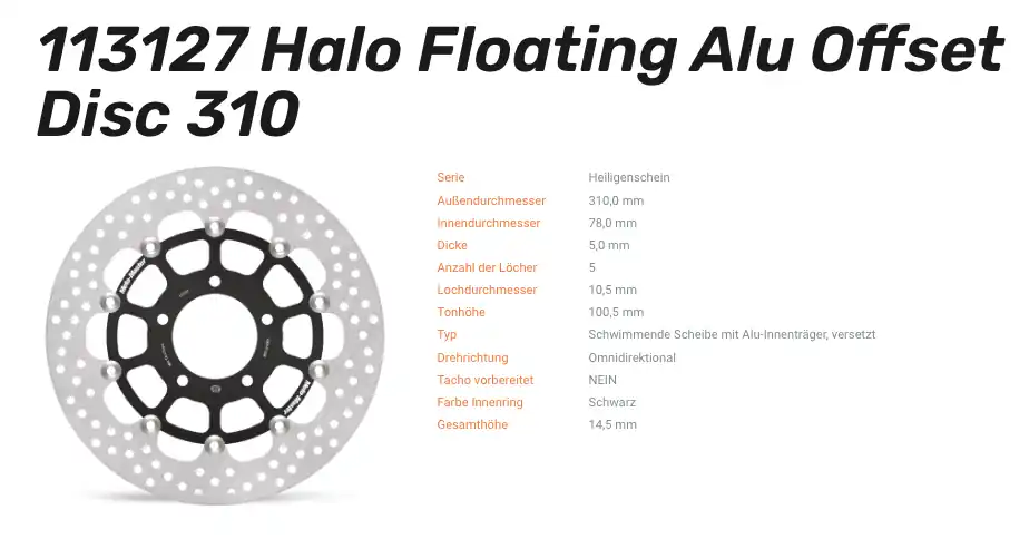 Saisonangebot Moto-Master Bremsscheibe Floating-Alu Offset Halo-Serie passend für Triumph – 113127