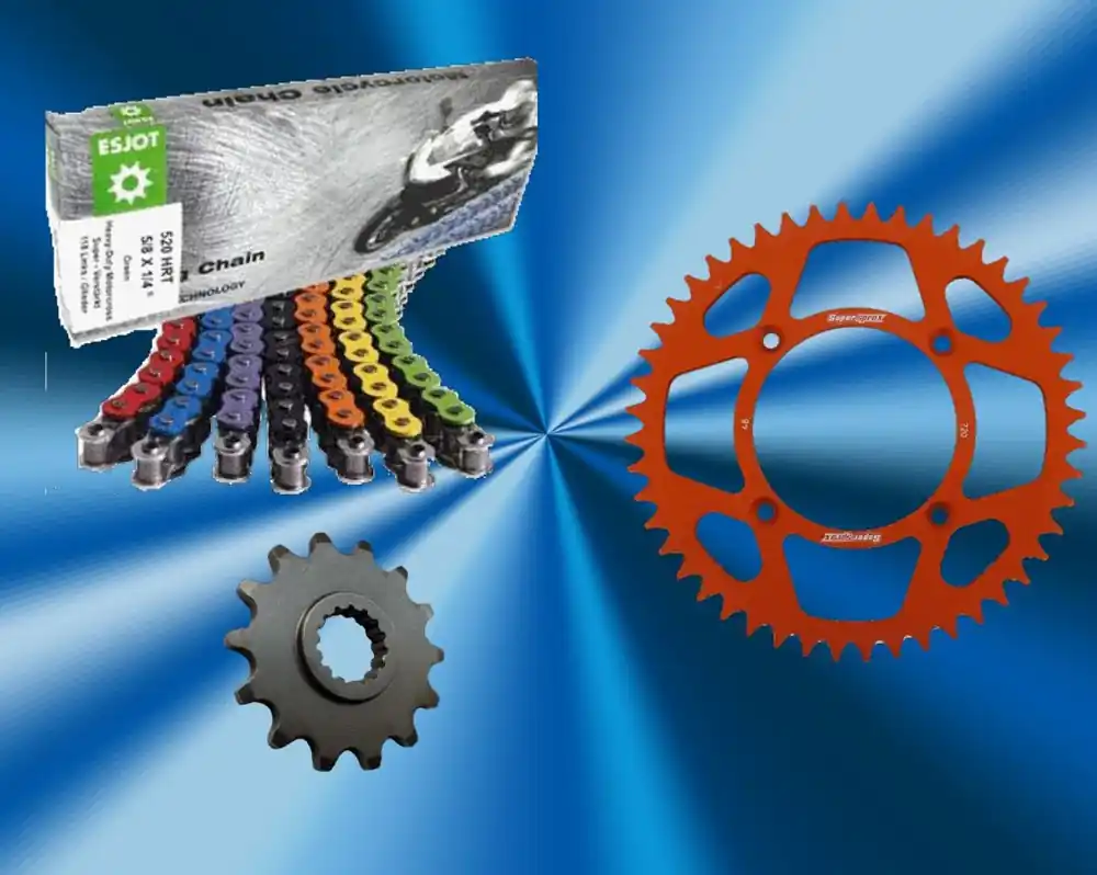 Schneller Versand Esjot Kettensatz passend für KTM E-Ride E-SM (Bj.15-) 520HRT Kette orange