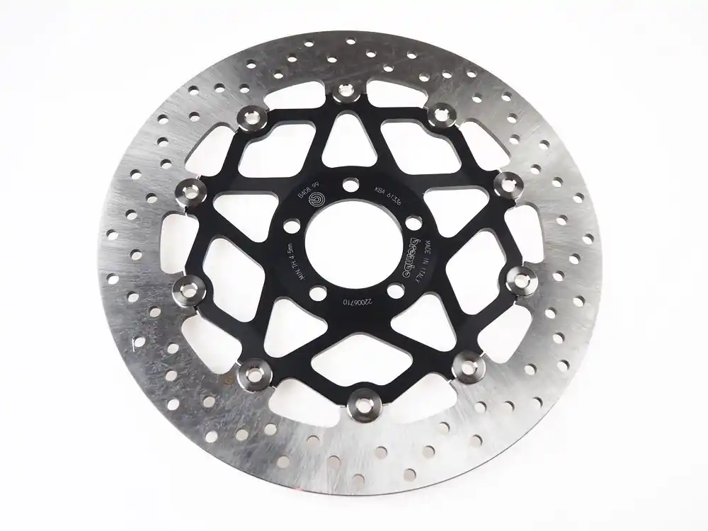 Schwimmend gelagerte Bremsscheiben bestehen aus einem Bremsband aus Edelstahl, das über 10 Mitnehmerbolzen mit dem Innenteil aus CNC-bearbeiteter und anschließend eloxierter Aluminiumlegierung verbunden ist. Die schwimmend gelagerten Bremsscheiben von Brembo bieten dank der Fertigung mit Materialien höchster Qualität absolute Spitzenleistungen.