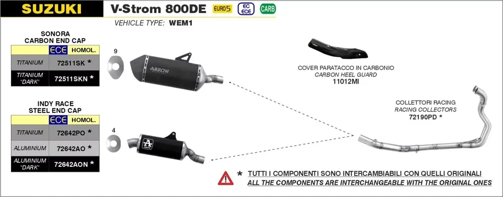 Der ARROW INDY-RACE Endschalldämpfer aus hochwertigem Aluminium bietet eine perfekte Kombination aus Leistung, Gewichtseinsparung und modernem Design – passend für Suzuki V-Strom 800DE und 800SE Modelle der Baujahre 2023–2024. Dank Euro-5-Zulassung ist ein zuverlässiger und gesetzeskonformer Betrieb auf öffentlichen Straßen gewährleistet. Das sportliche Indy-Race-Design sorgt für eine markante Optik und einen kernigen Sound, ohne den Originalkatalysator zu ersetzen. Ideal für Fahrerinnen und Fahrer, die Wert auf Qualität, Performance und ein sportliches Erscheinungsbild legen.