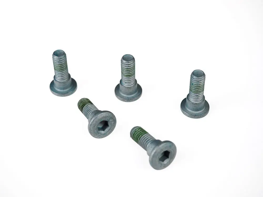 Hochwertige Schrauben zur Befestigung der Bremsscheiben. Beim Wechsel der Bremsscheiben wird empfohlen auch die Befestigungsschrauben zu tauschen.