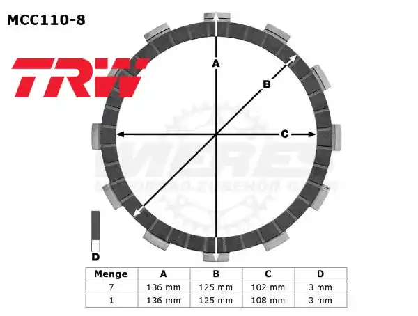 TRW Lucas Kupplungslamellenset (8 st.) MCC110-8 / MCC 110-8 Honda / Suzuki